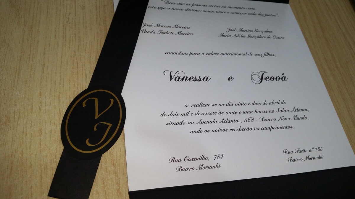 Detalhes do Convite: Convite Tradicional, Com abertura ao centro mostrando